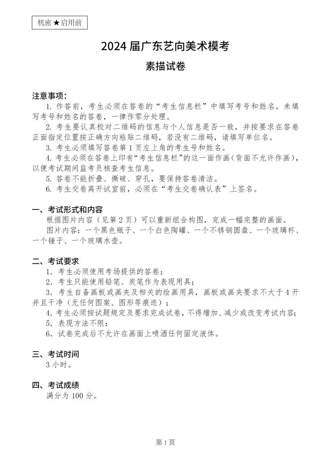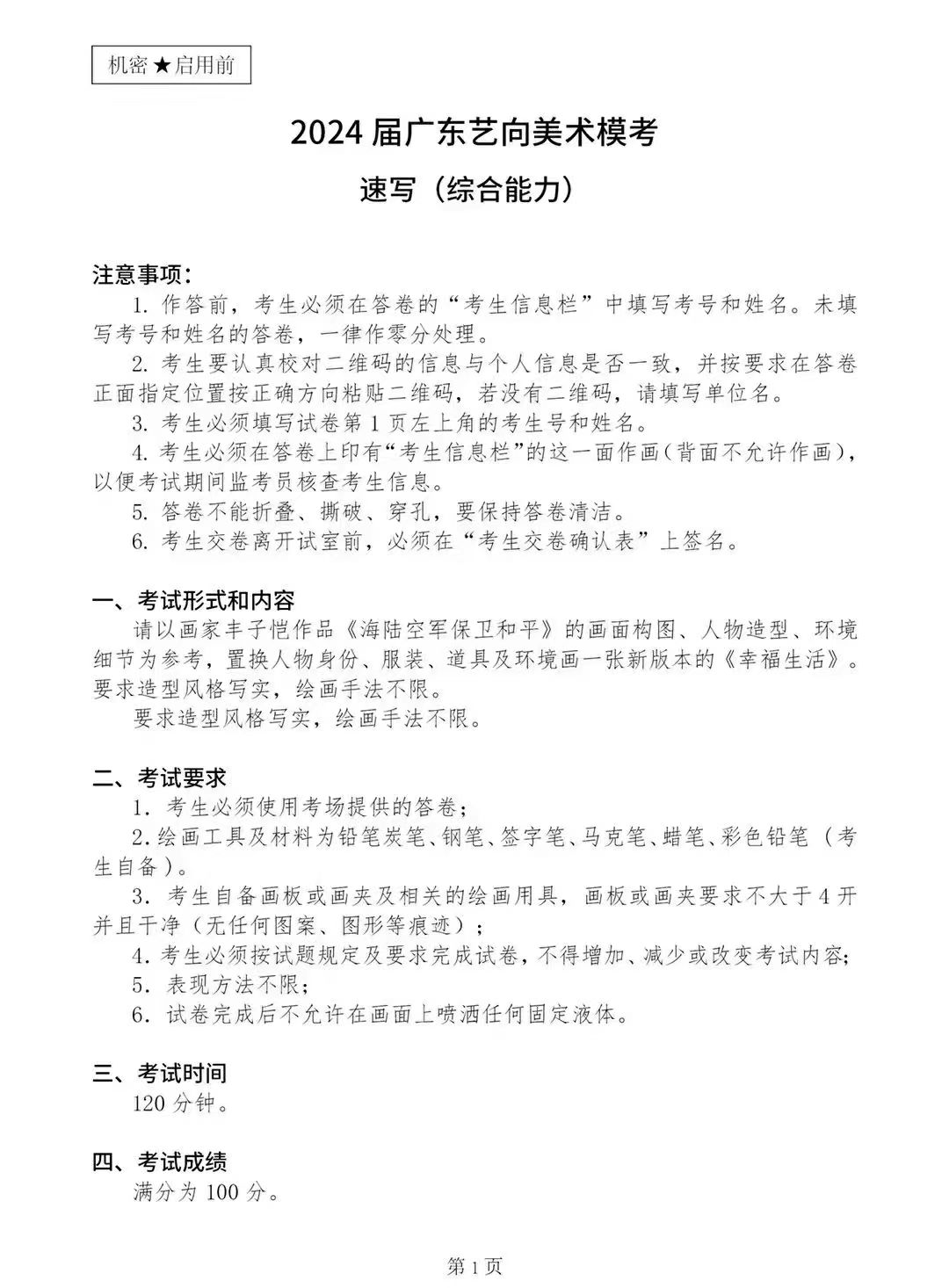 2024屆廣東美術一模考題(藝向)