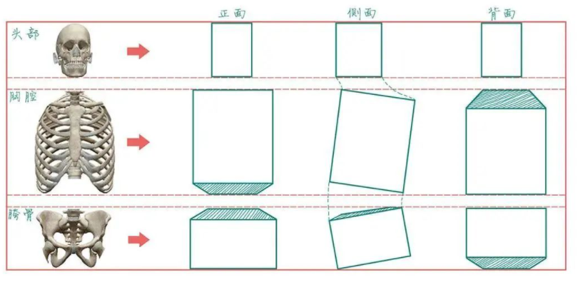 ②前傾后仰:注意近大遠小的透視以及肩寬的長度和肩的厚度。