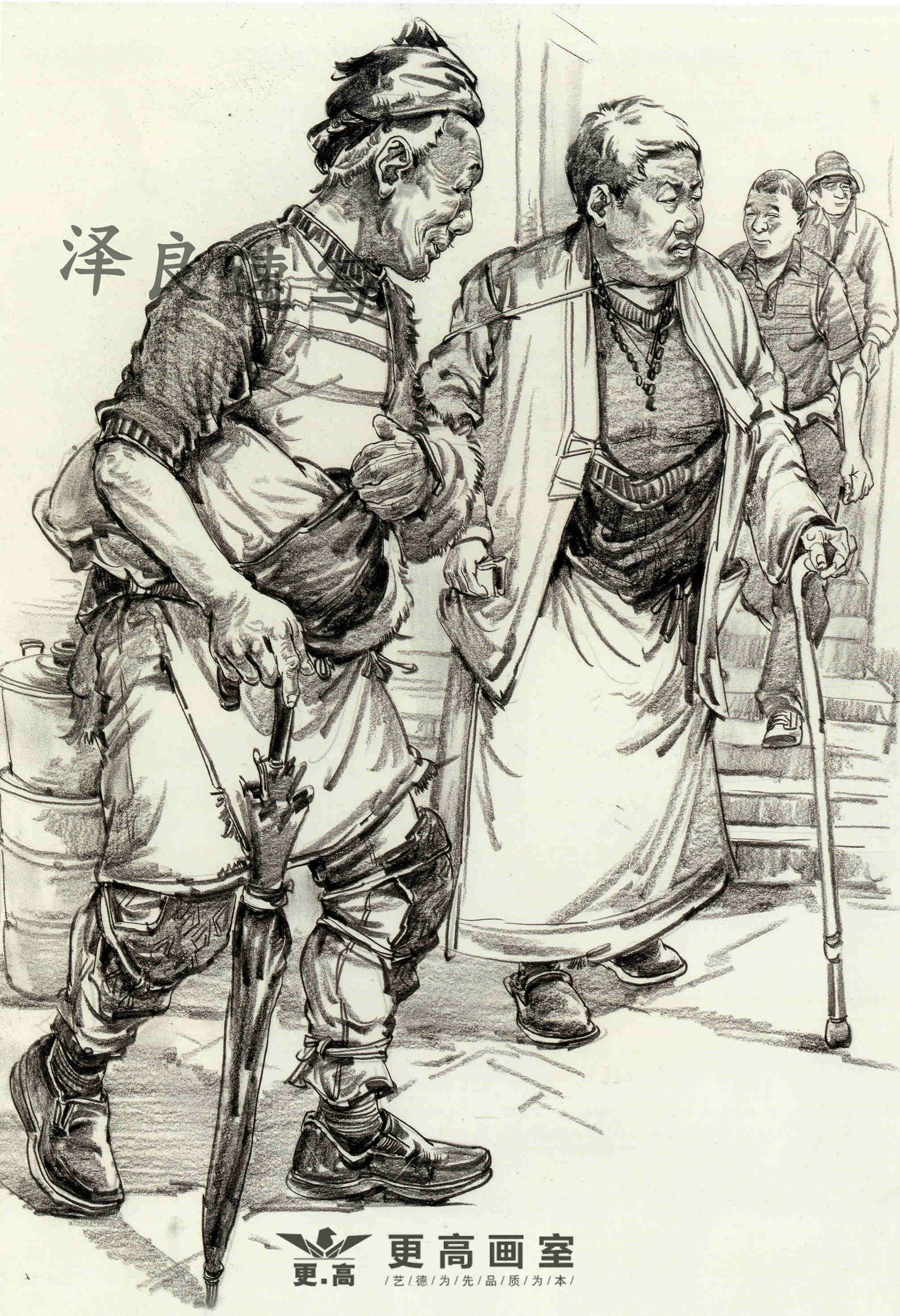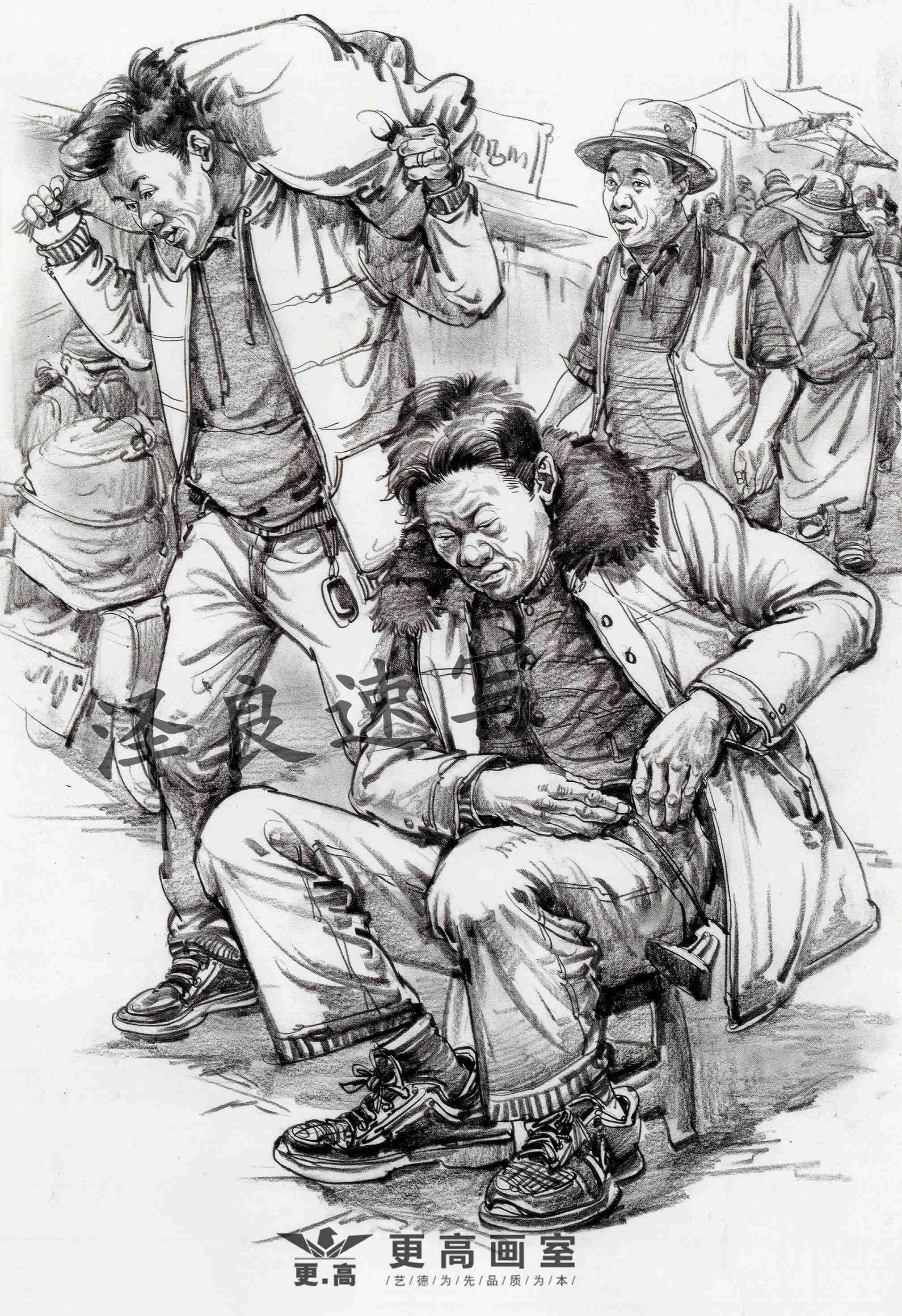 場(chǎng)景速寫中所指的動(dòng)態(tài)是畫(huà)面中單個(gè)或組合人物的動(dòng)作形態(tài)。由于場(chǎng)景速寫主要對(duì)象是活動(dòng)著的眾多人物,眾人的動(dòng)作隨時(shí)發(fā)生著不同的變化,如何在畫(huà)面中安排好人的動(dòng)作變化是場(chǎng)景速寫中的一個(gè)重要問(wèn)題。場(chǎng)景速寫里的人物之間要有互動(dòng)的地方,包括人物的表情,是喜是悲的神態(tài),都可以根據(jù)場(chǎng)景所發(fā)生的事情進(jìn)行創(chuàng)作,能將人物的表情畫(huà)到位才是真正的高手。