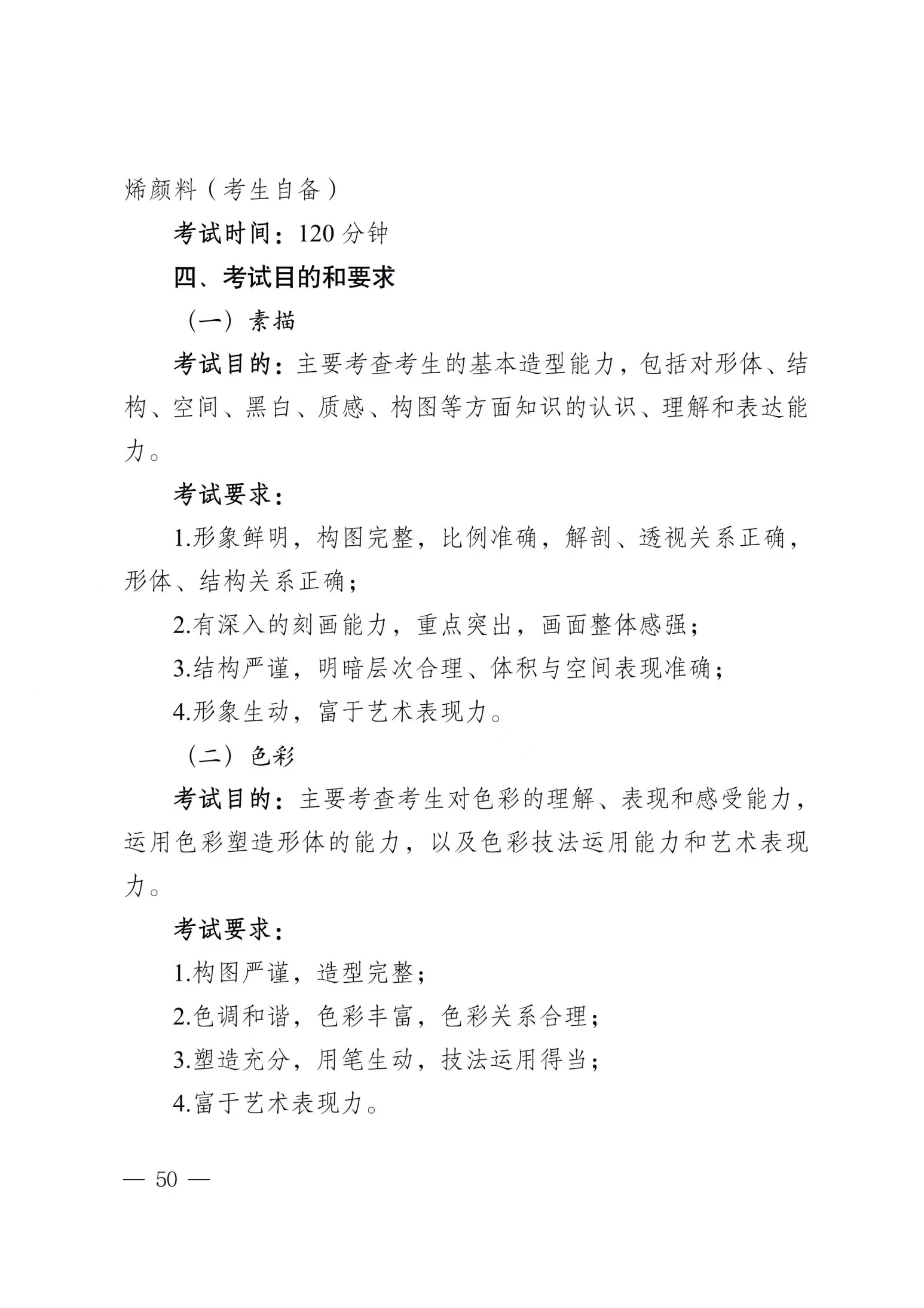 省統考各科類考試科目及考試要求見《廣東省2024年普通高等學校藝術類專業省統考考試說明》(附件2)。省統考具體實施辦法另文通知。