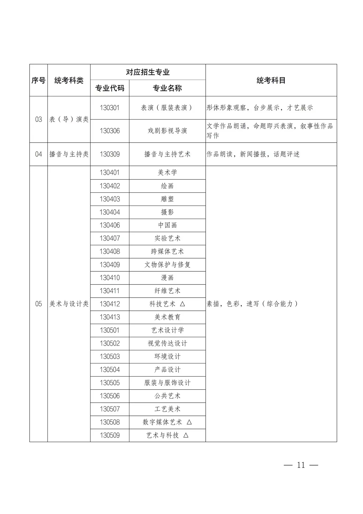 本方案考試和招生錄取辦法僅適用于組織專業能力考試的藝術類專業。