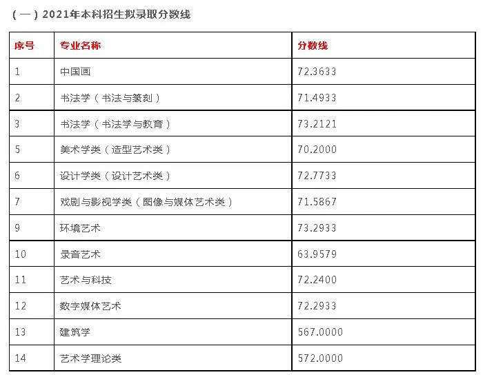 2021年中國美術(shù)學(xué)院各專業(yè)錄取分?jǐn)?shù)線: