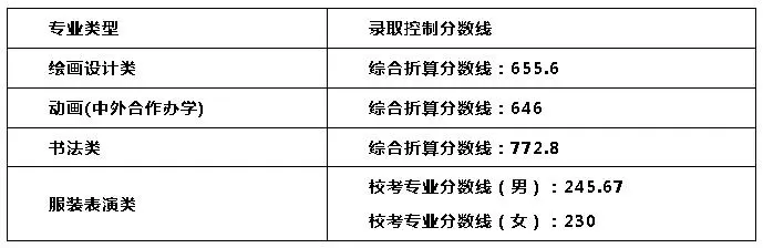 繪畫設(shè)計(jì)類綜合折算分?jǐn)?shù)線:612.8