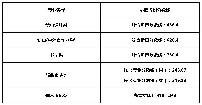 (一)湖北美術(shù)學(xué)院2021年普通本科招生錄取控制分?jǐn)?shù)線(外省)如下: