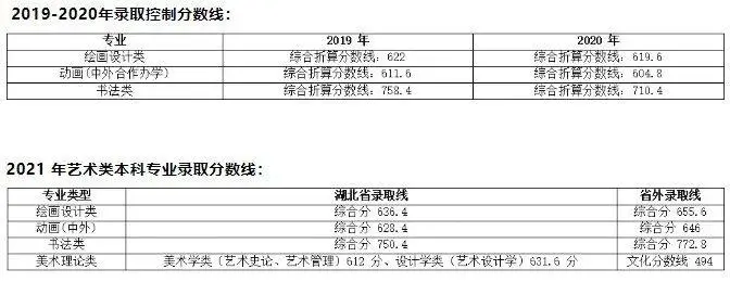 2020年湖北美術(shù)學(xué)院各專業(yè)錄取分?jǐn)?shù)線