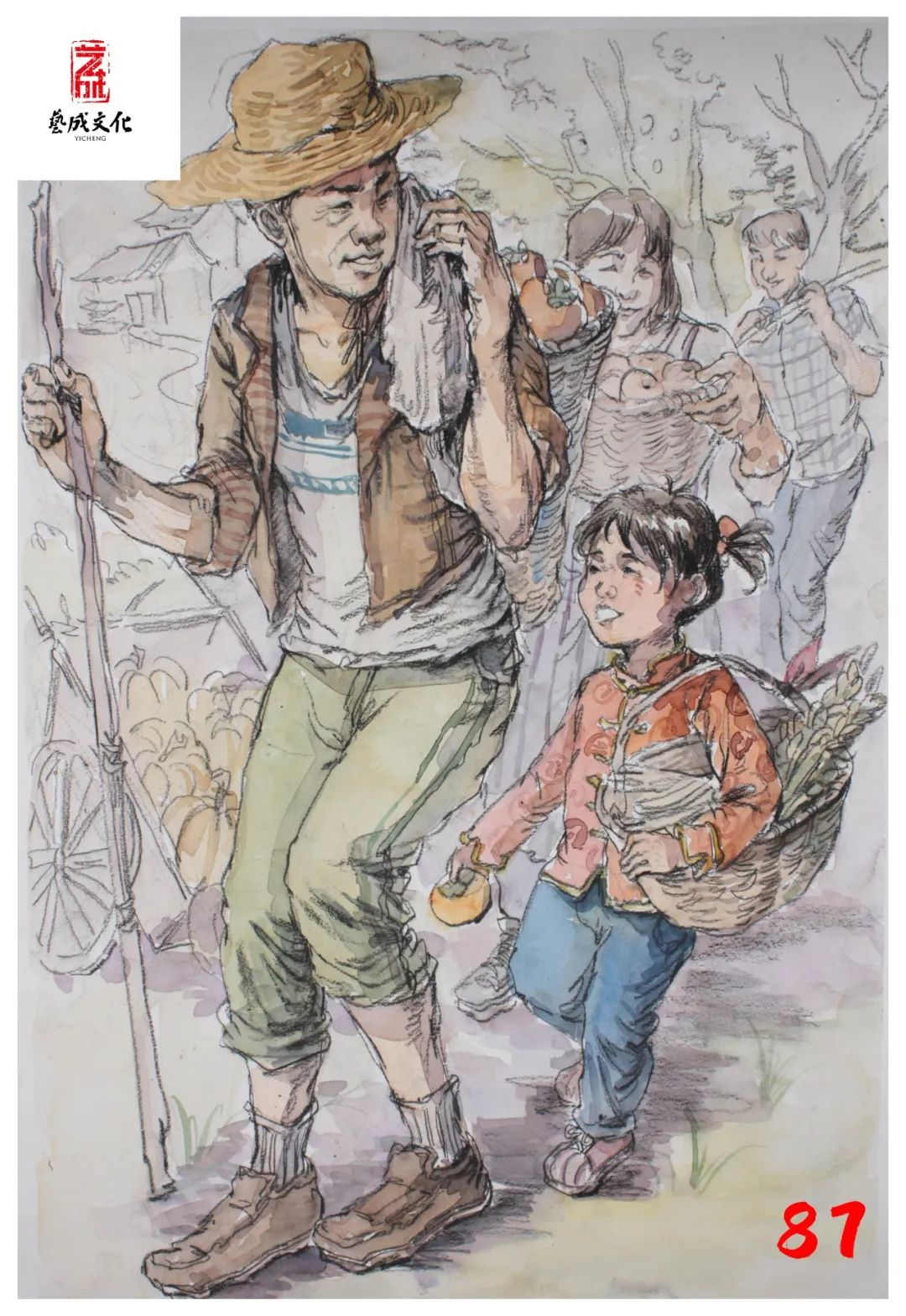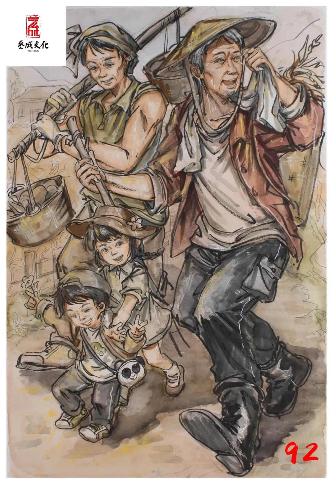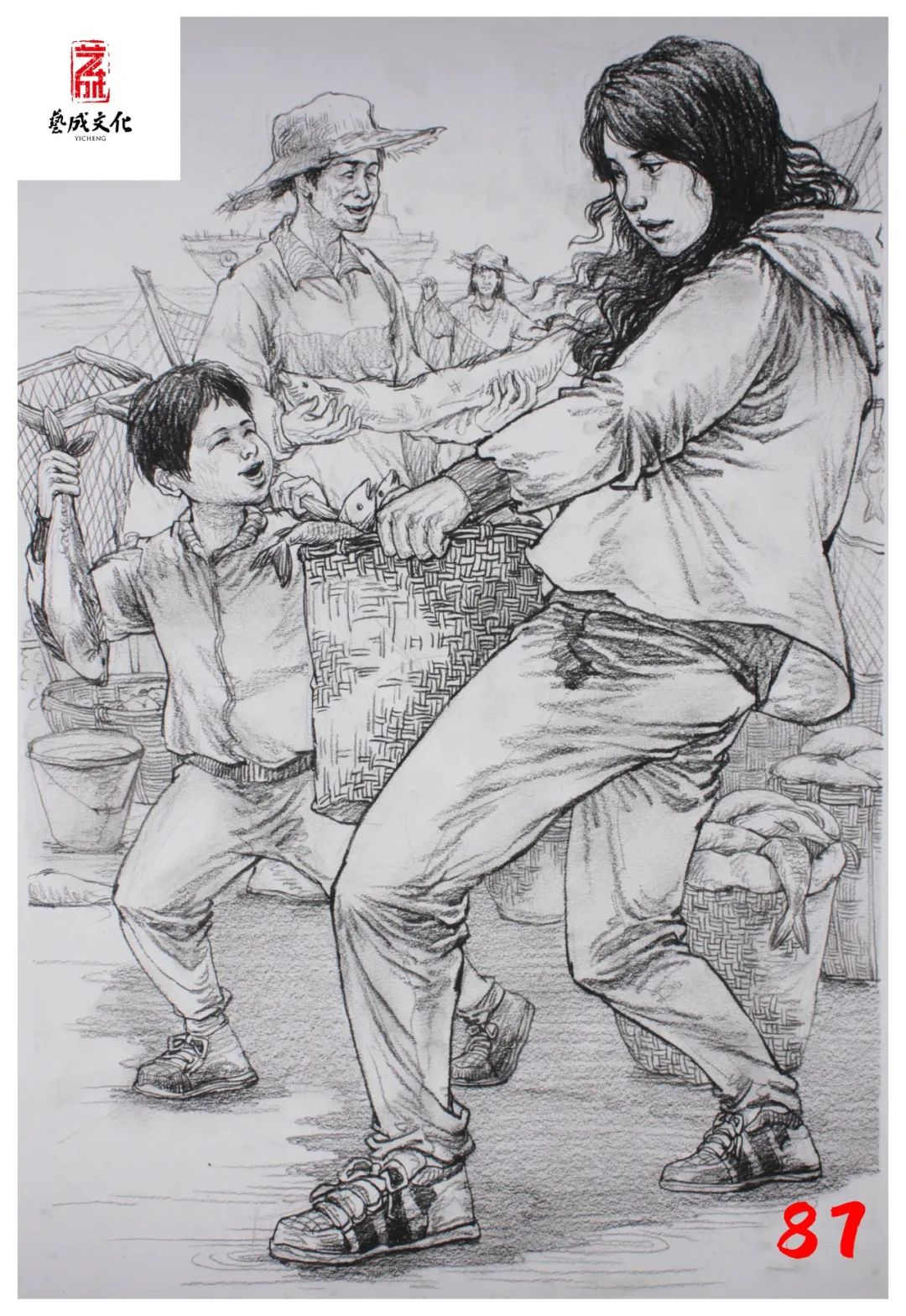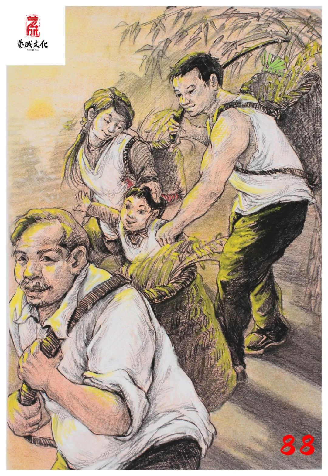 解析:試題要求你創造豐收場景,測試素材中人物的動態比例略有夸張。表現手法與我們的對比草圖略有不同。參考內容較少。主要目標是考驗考生的敏感度和生活記憶能力,人物注重動態比例特征,大量的默寫元素也幫助考生發揮自己的感受和想象力,創作出更好的作品!